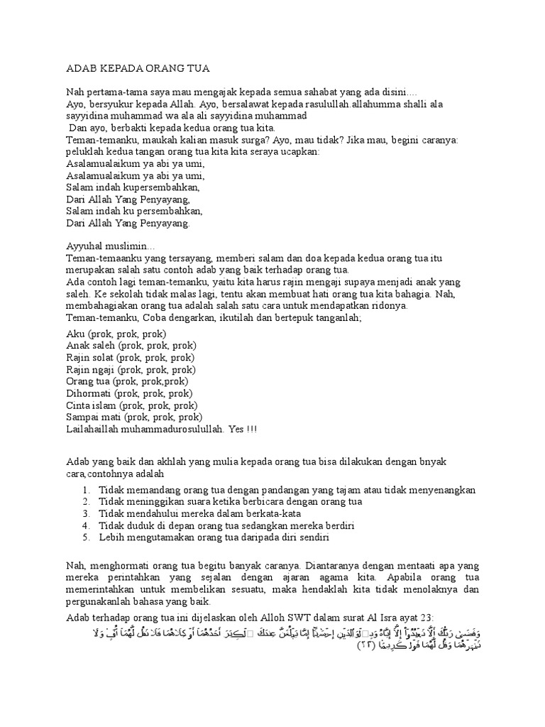 Adab Kepada Orang Tua Pidato