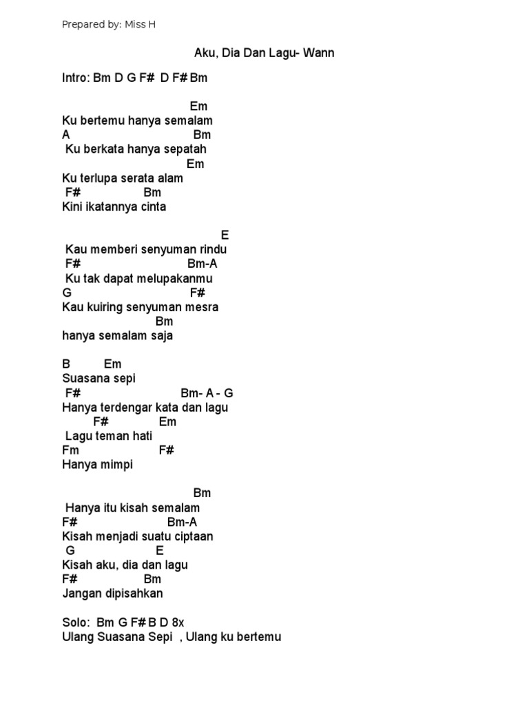 Wann Aku Dia Dan Lagu Official Mv Chords Chordify