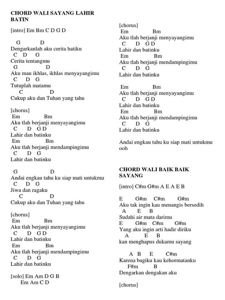 Chord Wali Sayang Lahir Batin