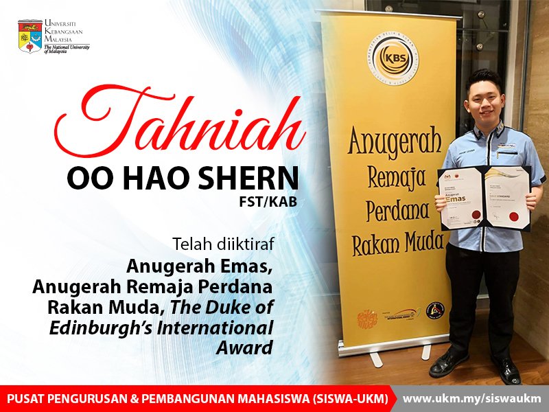 Ukm Malaysia On Twitter Oo Hao Shern Pelajar Fst Ukm Telah Diiktiraf Sebagai Penerima Anugerah Emas Anugerah Remaja Perdana Rakan Muda The Duke Of Edinburgh S International Award Tahniah Dan Semoga Terus Cemerlang
