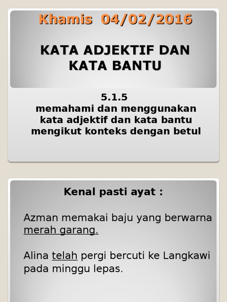 Kata Adjektif Dan Kata Bantu Tahun 5