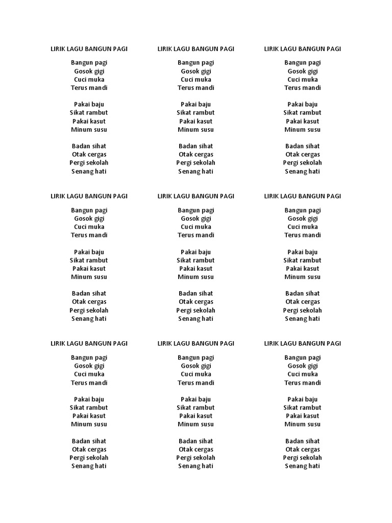 Doc Lirik Lagu Bangun Pagi Lagu Kanak Kanak Muhd Naim Academia Edu