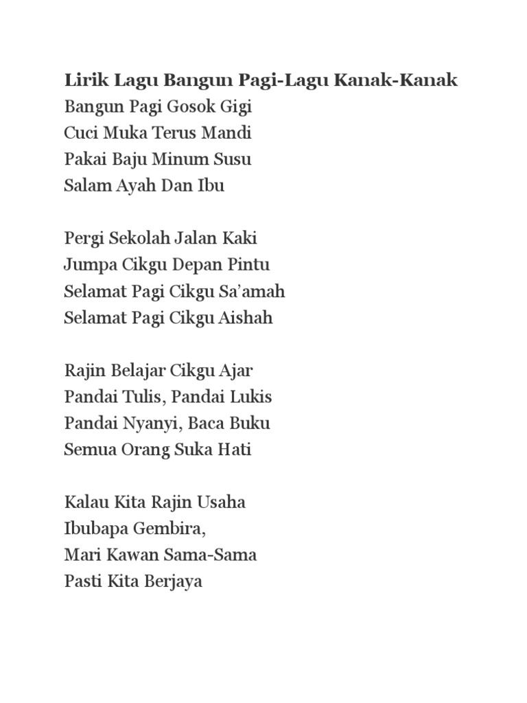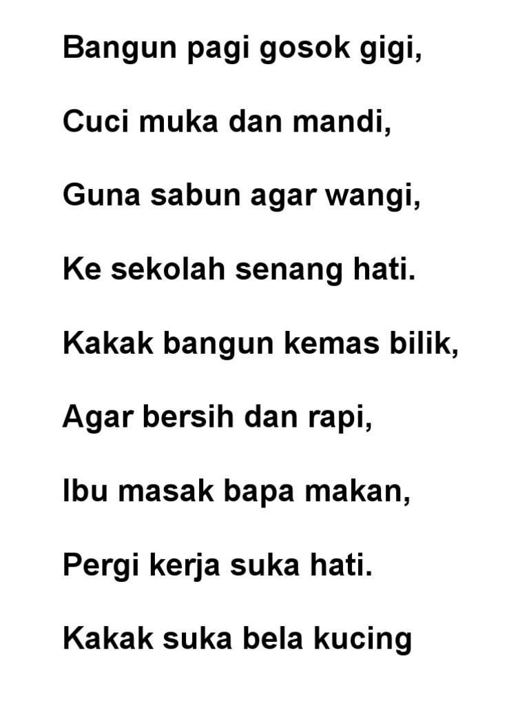 Ini versi yang aku dengar waktu aku darjah 6 dulu. Lirik lagu bangun pagi lagu kanak kanak. Jika anda bisa melakukan gosok gigi secara rutin maka secara langsung anda akan menghemat uang untuk perawatan gigi karena sakit gigi. Many malaysians would ve grown up singing the children s song bangun pagi gosok gigi a guide of sorts on the best way to start their day.