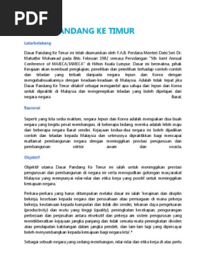 Dasar Pandang Ke Timur Dilaksanakan Dalam Pemerintahan Tun Dr Mahathir Mohamad