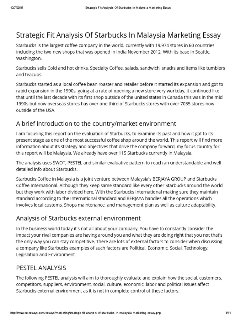 Strategic Fit Analysis Of Starbucks In Malaysia Marketing Essay Starbucks Coffee