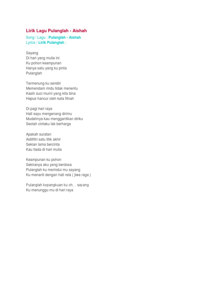 Pdf Lirik Lagu Bila Rindu By Ruffedge At Senikata Lirik Lagu Ain Naomi Academia Edu