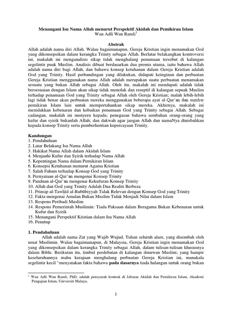 Isu Penggunaan Kalimah Allah Oleh Orang Bukan Islam Pdf