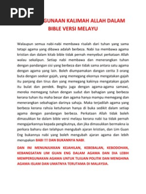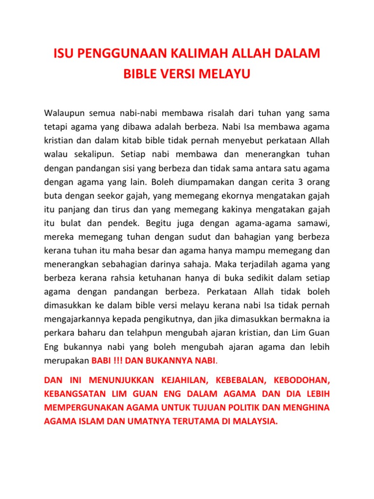Isu Penggunaan Kalimah Allah Dalam Bible Versi Melayu