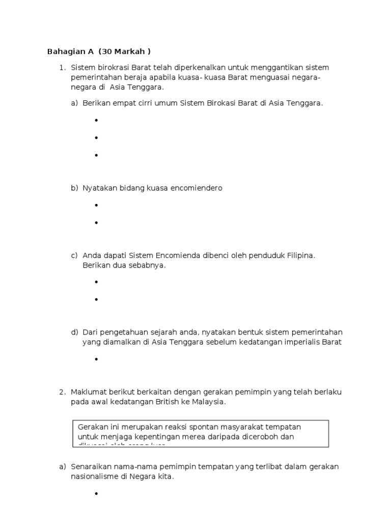 Bahagian A Kuasa Mutlak Dalam Aspek Politik Ekonomi Dan Sosial 3 Kerajaan Negeri Negeri Melayu Bersekutu Juga Telah Membaiki Sistem Perhubungan Iaitu Pdf Document