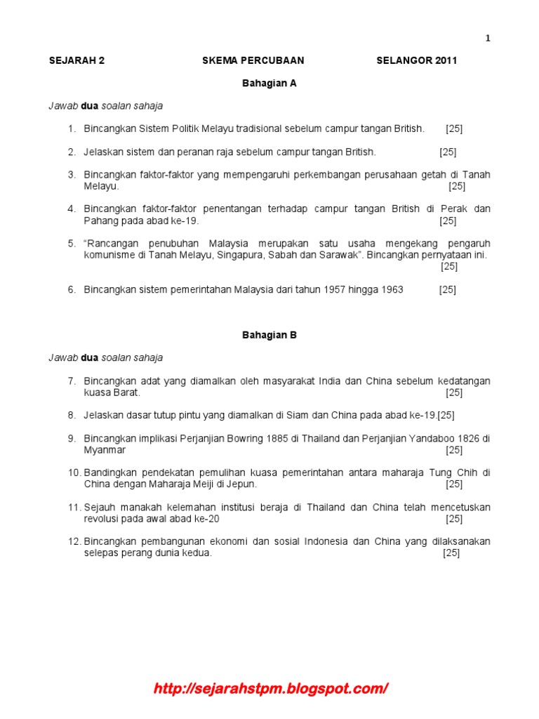 Rashman Skema Percubaan Sejarah 2 Selangor