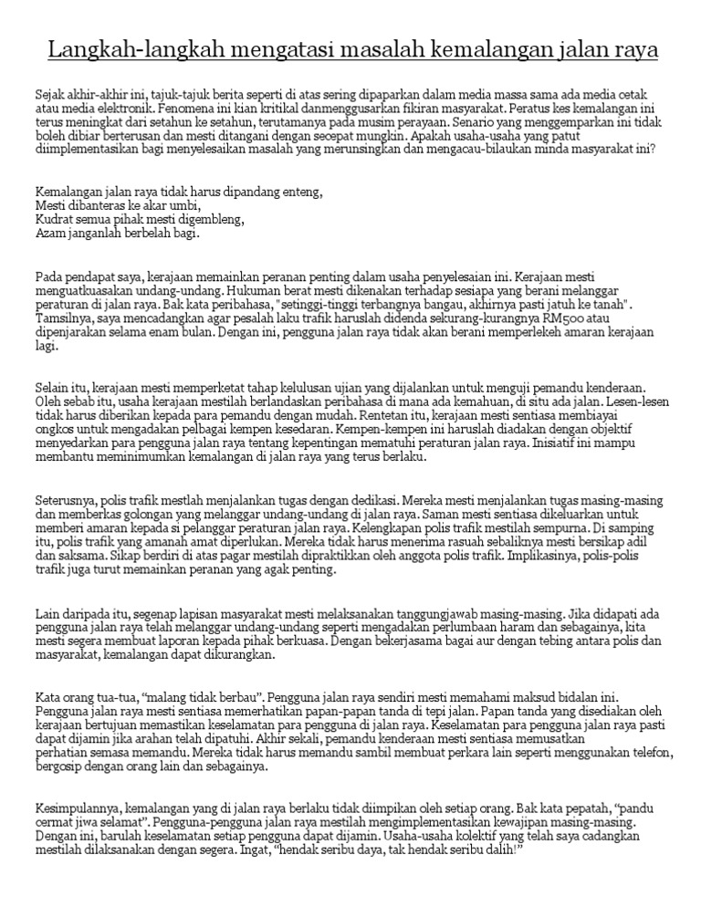 Karangan Panas Spm Langkah Langkah Mengatasi Kemalangan Jalan Raya Part 1