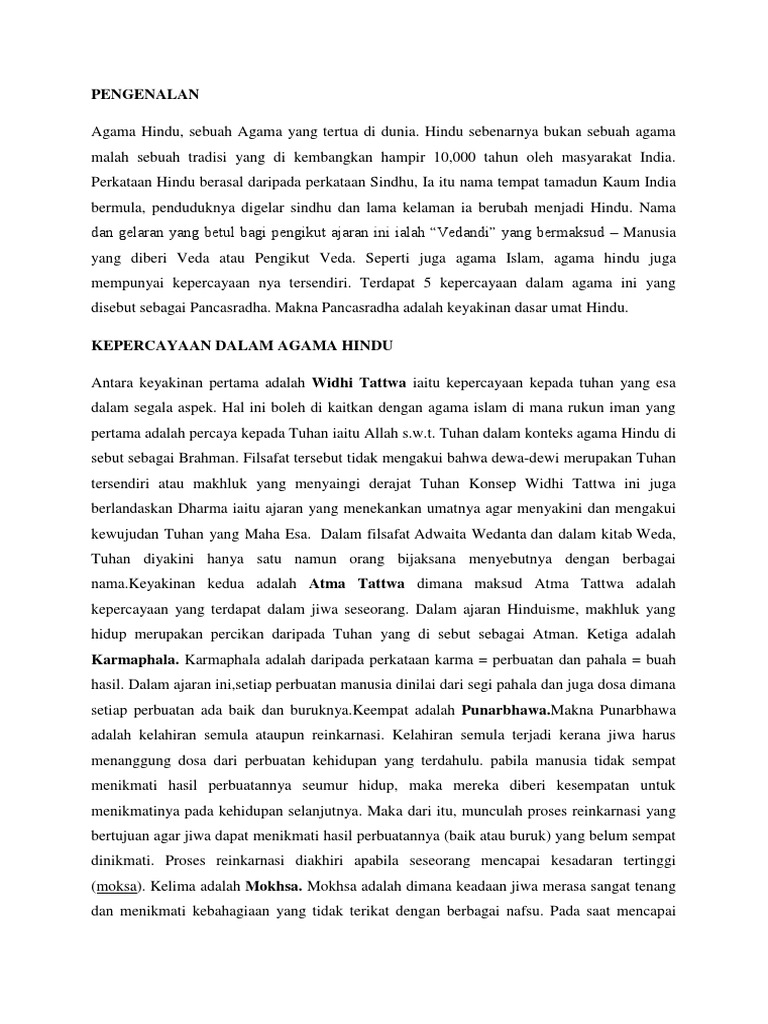 Pengenalan agama hindu sebuah agama yang tertua di dunia. Hindu sebenarnya bukan sebuah agama malah sebuah tradisi yang di kembangkan hampir 10 000 tahun oleh masyarakat india. Percubaan kaum muslimin untuk menukar agama lain dihukum oleh pemerintah negeri dengan hukuman dari penjara hingga penjara. Agama di malaysia di negara kita terdapat pelbagai agama agama agama utama di malaysia termasuklah agama islam kristian buddha hindu dan sikhism setiap agama punyai perayaan dan kepercayaan masing masing maka adalah penting untuk mengetahui dan bertoleransi antara satu sama lain.