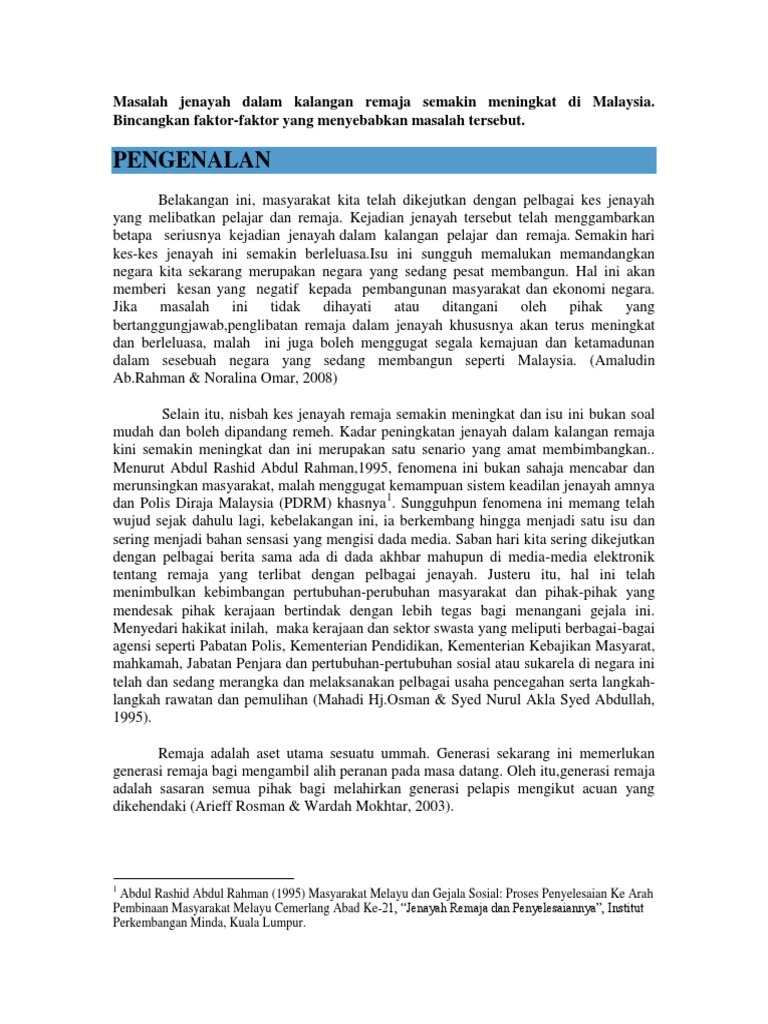 Karangan Jenayah Dalam Kalangan Remaja