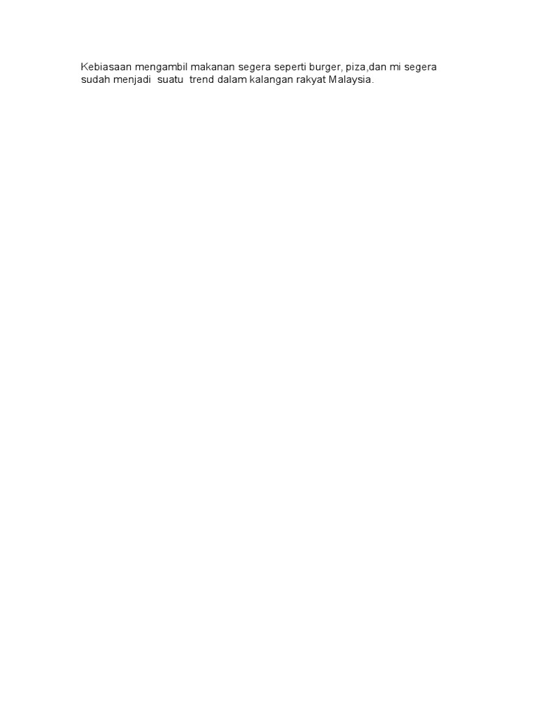 Kesan Pengambilan Makanan Segera Esei Spm Stpm