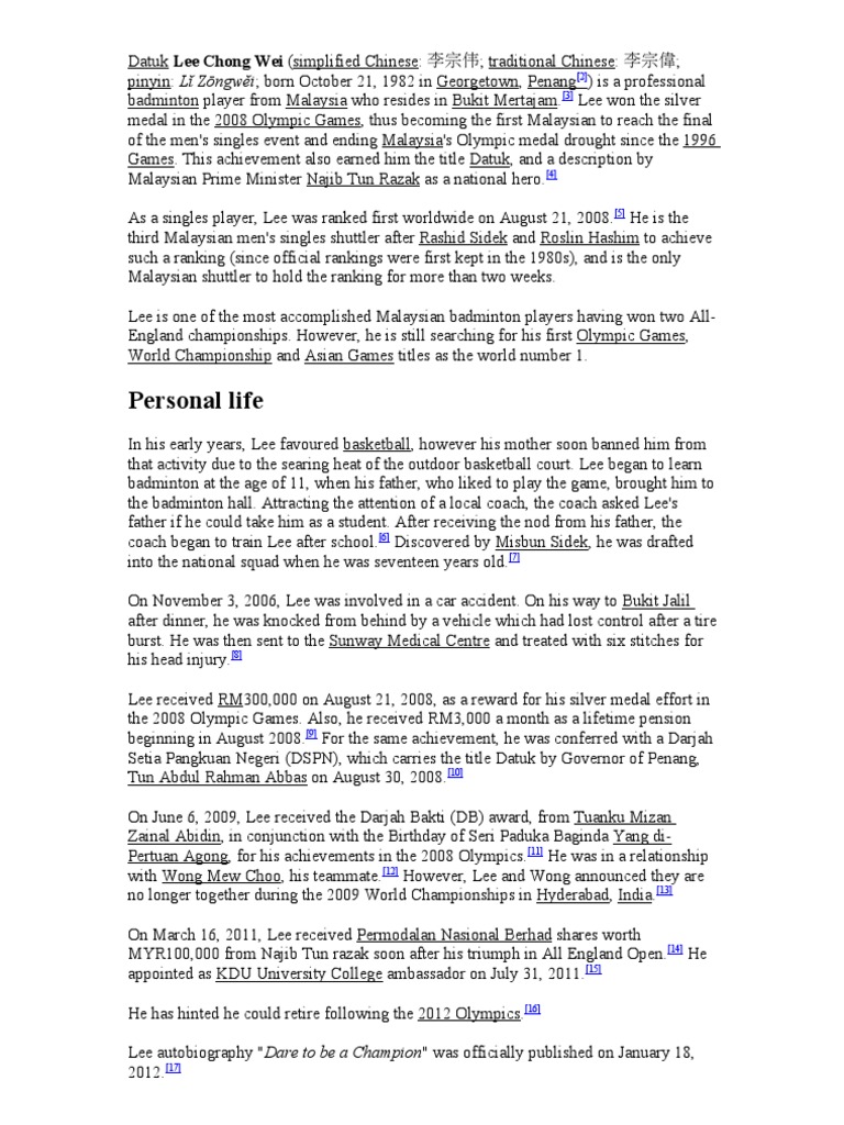 Doc Biodata Datuk Lee Chong Wei Zaimah Anuar Academia Edu
