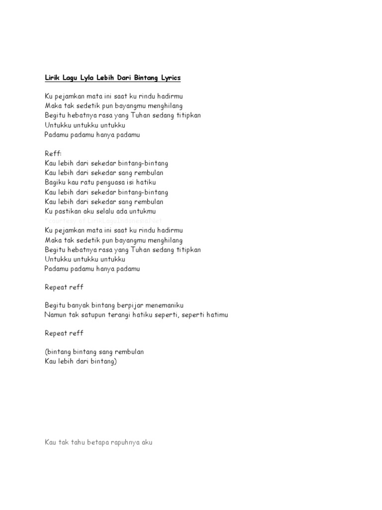 Lirik Lagu Lyla Lebih Dari Bintang Lyrics Ku Pejamkan Mata Ini Saat Ku Rindu Hadirmu Maka Tak