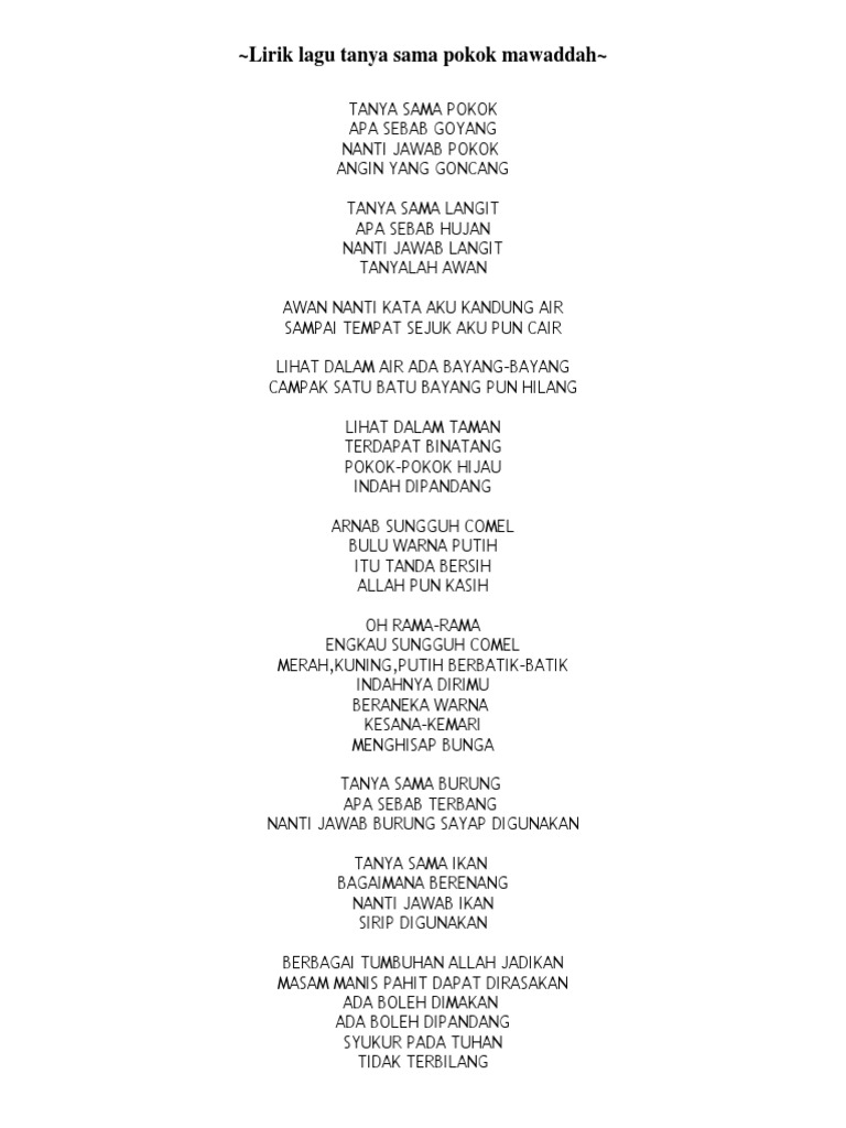 Lirik Lagu Tanya Sama Pokok Mawaddah