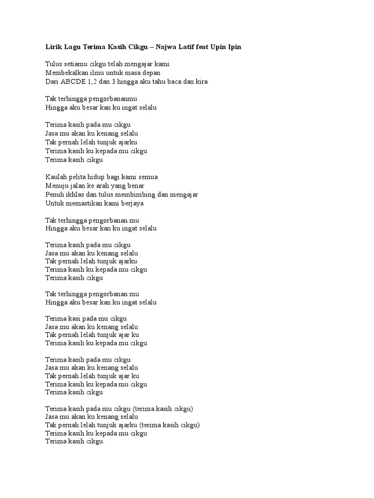 Terima Kasih Cikgu Lyrics Upin Ipin Najwa Latif Kkbox