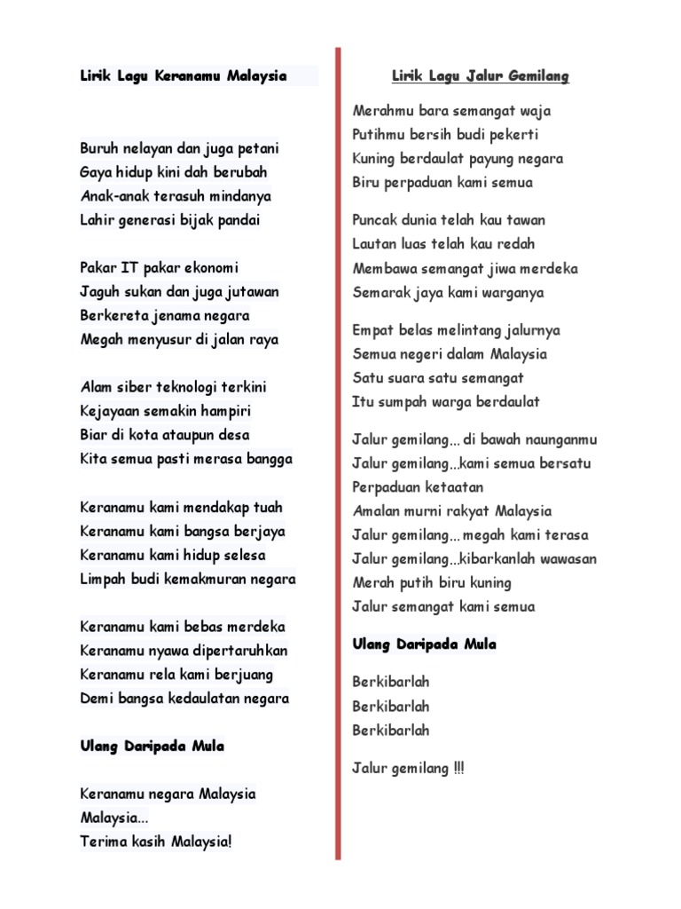 Lirik Lagu Malaysia Terkini Lirik Jalur Gemilang Lagu Patriotik Malaysia