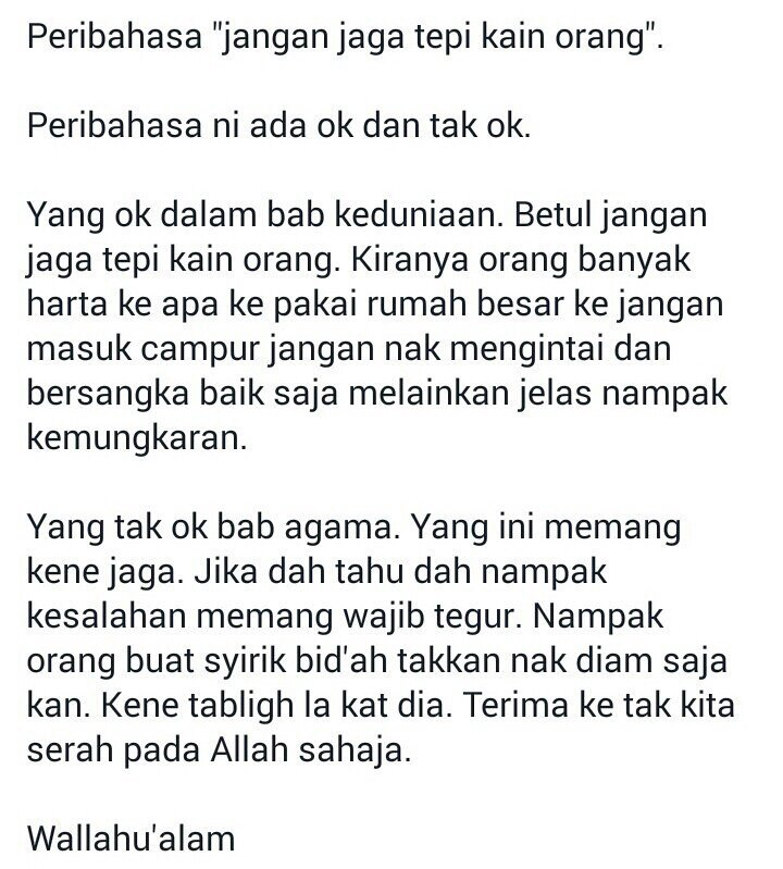 Sekiranya Pepatah Jangan Jaga Tepi Kain Orang Ini Membawa Maksud Buangkan Sifat Ingin Tahu Yang Berlebih Lebihan Mengenai Sifat Buruk Dan Orang Agama Mutiara