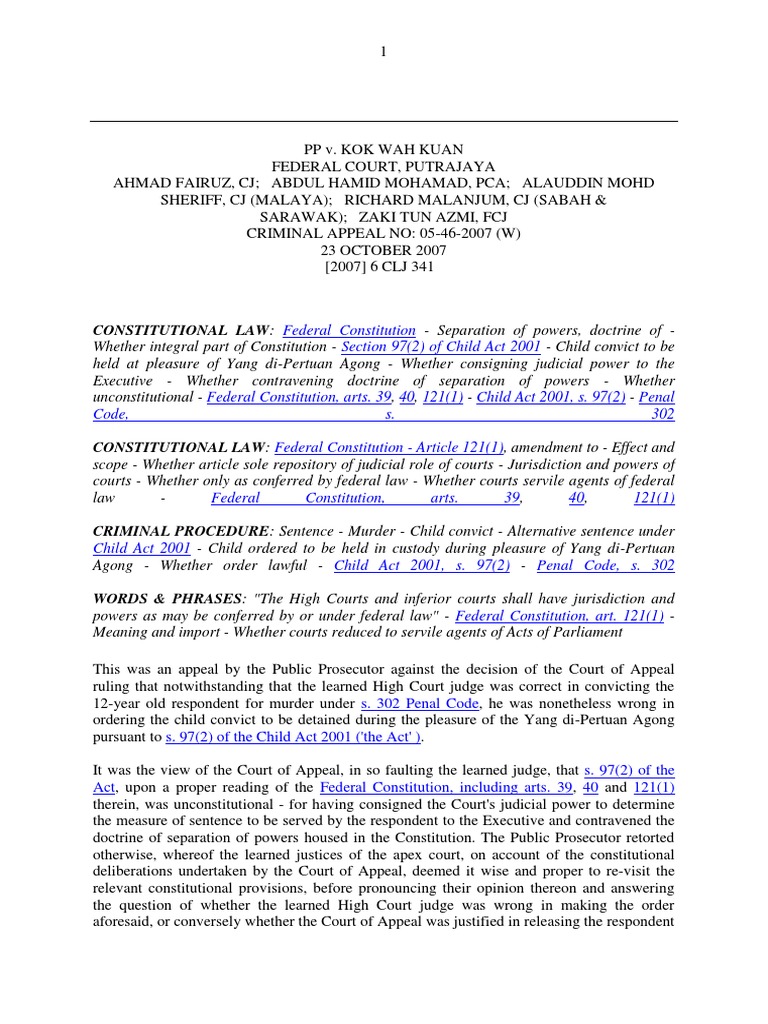 Kok Wah Kuan Case Review Public Prosecutor V Kok Wah Kuan 2007 6 Clj 341 Federal Court Putrajaya 23 October 2007 Facts Court Decision The Child Course Hero