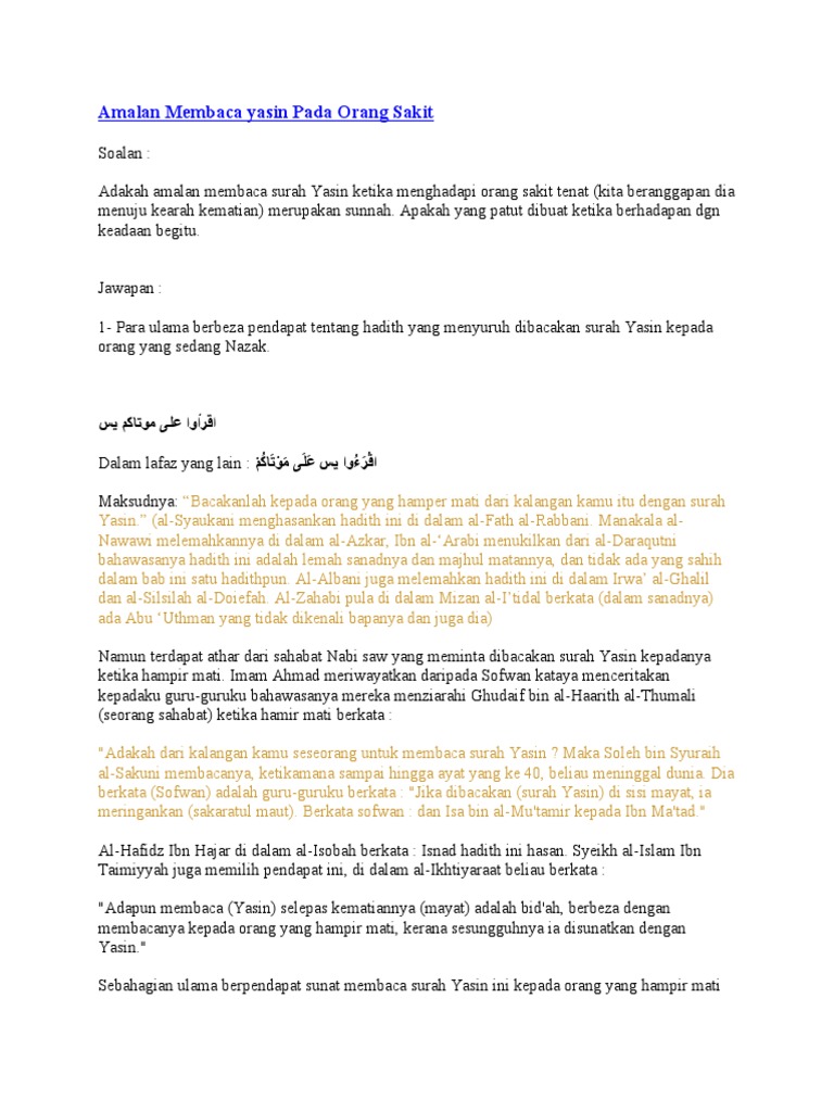Cara Membaca Yassin Pada Orang Sakit Tenat Fitrah Islami Online