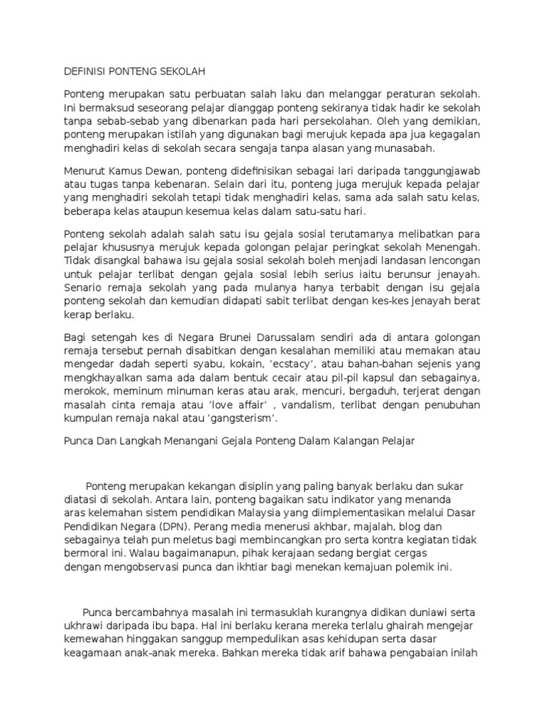 Definisi Ponteng Sekolah