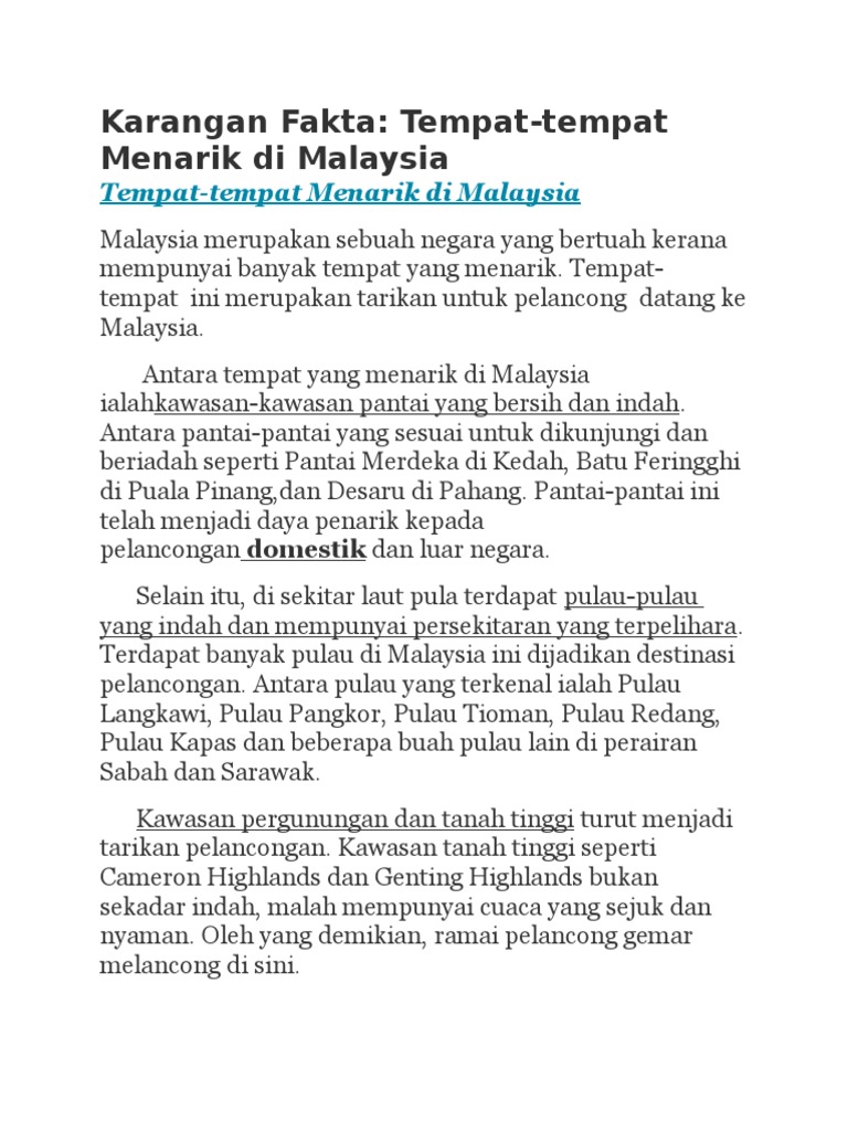 Tempat menarik di malaysia karangan spm. Berkumpul di sekolah pukul 7 00 pagi menaiki bas tiba 8 30 pagi disambut oleh pengawai yang bertugas memberikan taklimat tentang tempat tersebu karangan surat tidak rasmi aktiviti cuti sekolah malaysia karangan surat tidak rasmi aktiviti kokurikulum. Malaysia telah diangkat sebaigai sebuah destinasi pelancongan. Ceritakan pengalaman anda semasa melawat ke tempat tempat bersejarah yang terkenal di negara kita. Bincangkan karangan spm.