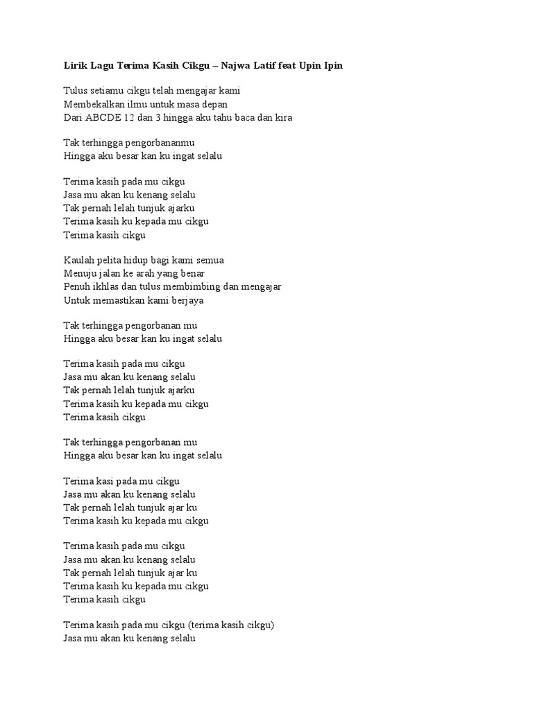 Lirik Lagu Terima Kasih Cikgu