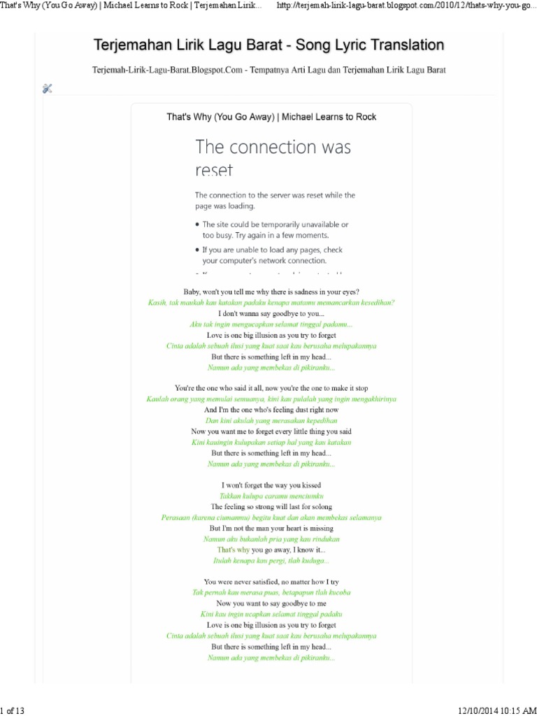 Arti Lirik Lagu That S Why You Go Away Mltr Lirikwesternindo