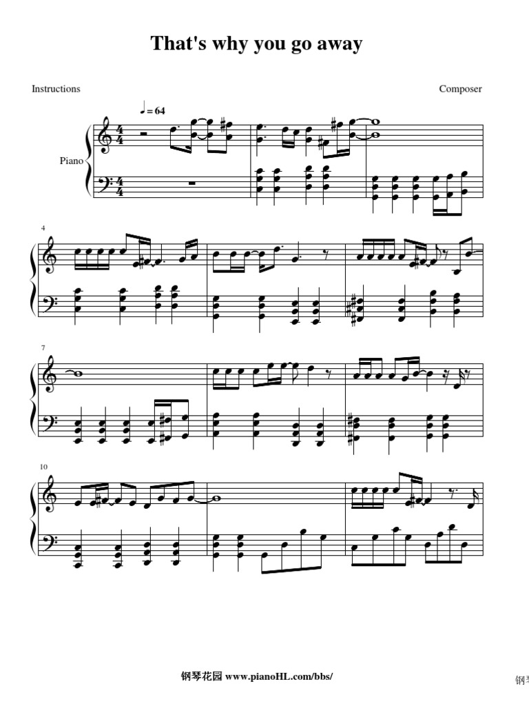 钢琴版 That S Why You Go Away 在线收听 钢琴谱 王焱钢琴艺术培训论坛