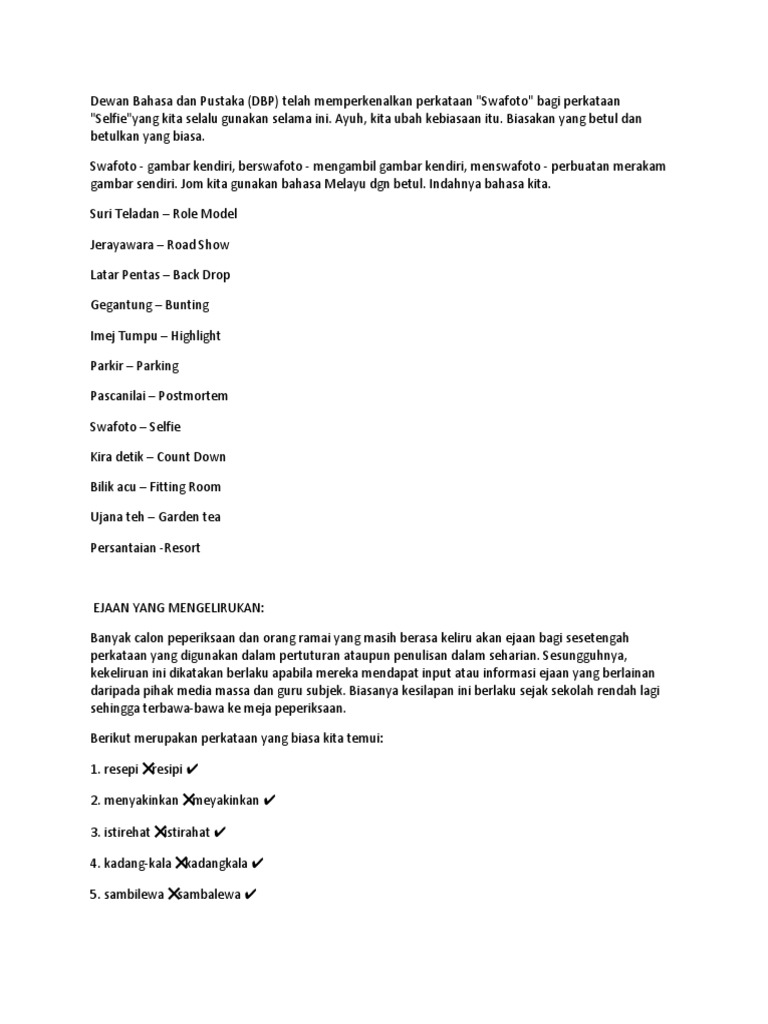 71 Perkataan Bahasa Melayu Yang Sering Disalah Eja Berserta Pembetulannya
