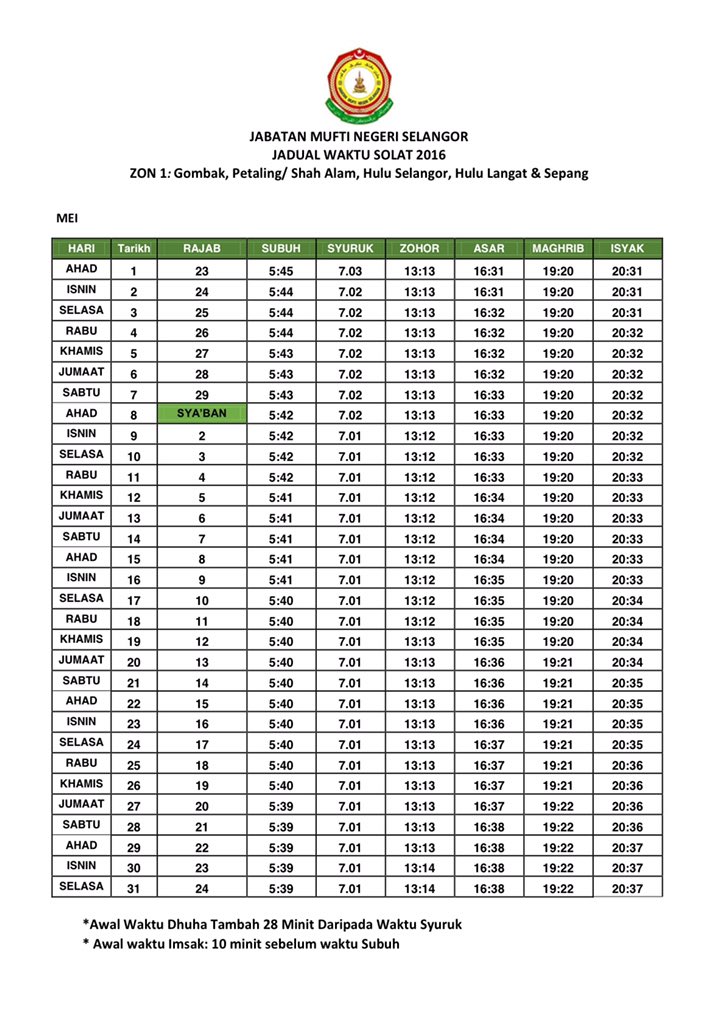 Isma Shah Alam Diumumkan Waktu Solat Hari Ini 10 Mei Facebook